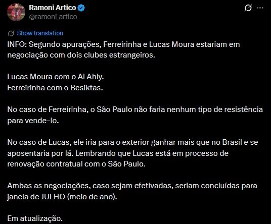 Haberde, 28 yaşındaki sol kanat oyuncusunun performansından memnun olmayan São Paulo’nun, olası bir transfer sürecinde zorluk çıkarmayabileceği ifade edildi. Bu durumun, transferin kısa süre içinde sonuçlanma ihtimalini artırdığı değerlendiriliyor.