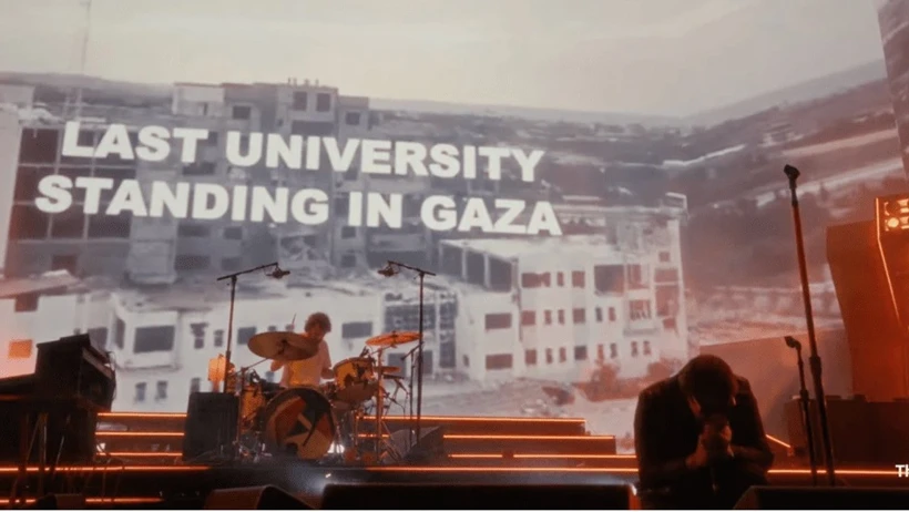 Grup, 2016’dan bu yana nadiren çaldığı “Oblivius” parçasını seslendirirken sahne arkasındaki dev ekranlarda kapsamlı bir video kolajı yayınladı. Görüntülerde ABD dış politikası, tarihsel müdahaleler ve özellikle Gaza Strip’te süren yıkım öne çıkarıldı. Ayrıca Iran’a yönelik saldırılara dair sahneler de yer aldı.